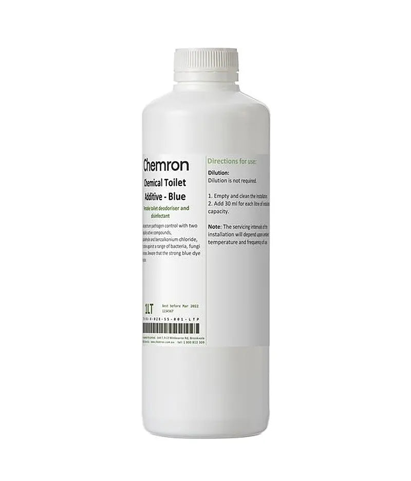 Keep portable toilet systems clean, hygienic, and odour-free for up to two weeks with Chemron's Chemical Toilet Additive – Blue. This super-concentrated formula combines two powerful active agents — glutaraldehyde and benzalkonium chloride — to deliver broad-spectrum protection against bacteria, fungi, and viruses, while neutralising unpleasant odours.