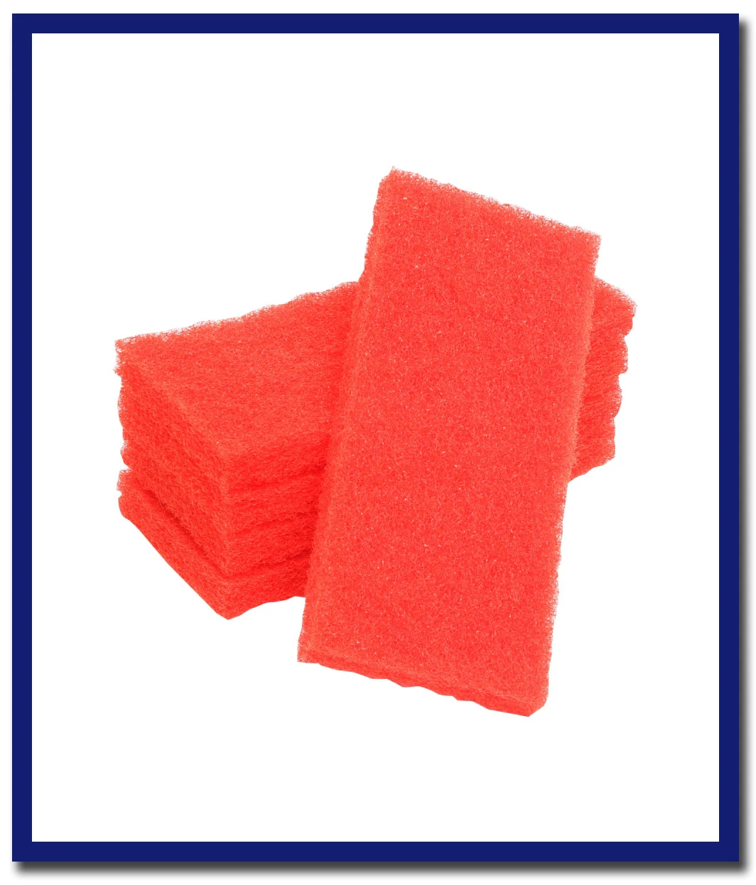 Red: Used for spray surface preparation or spot buffing, dry buffing, or a light wet scrub.