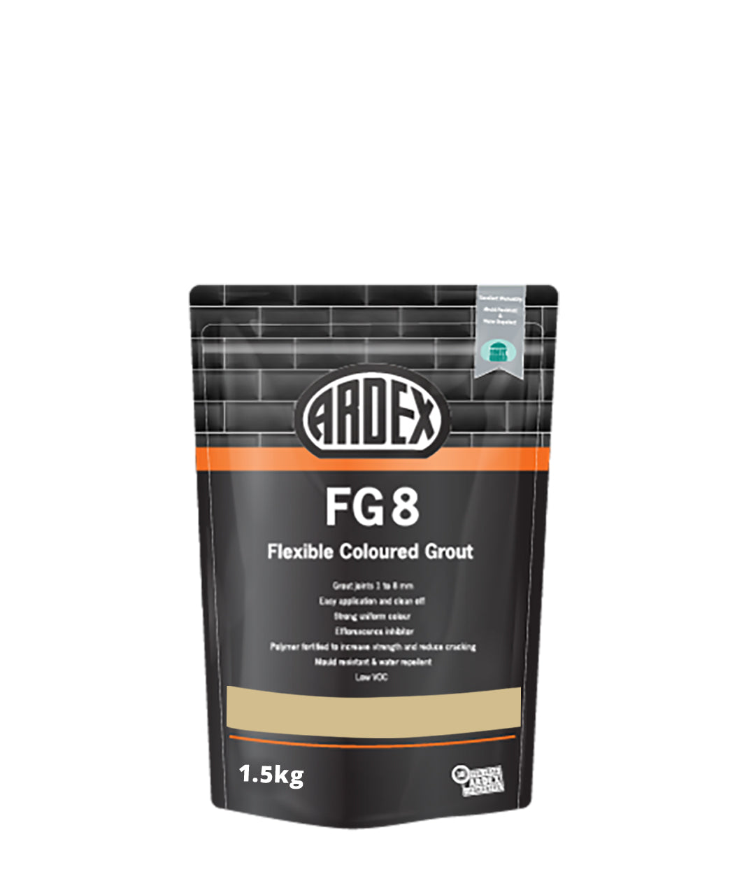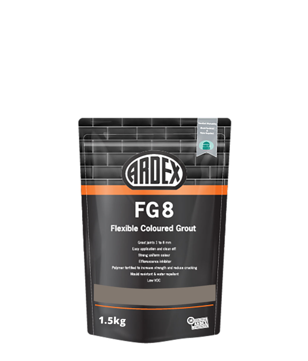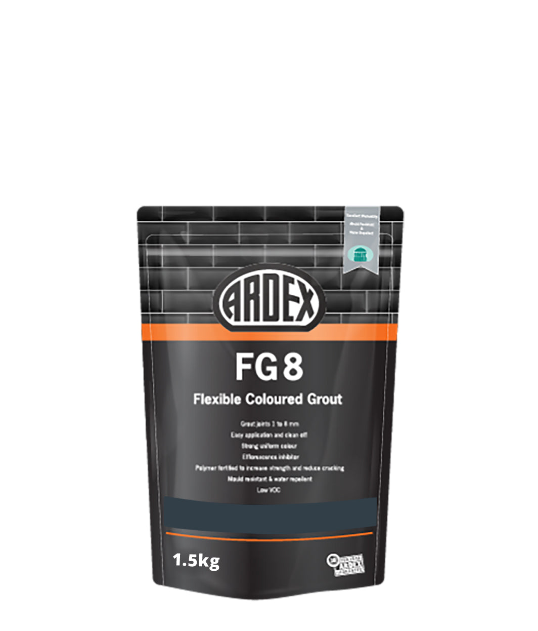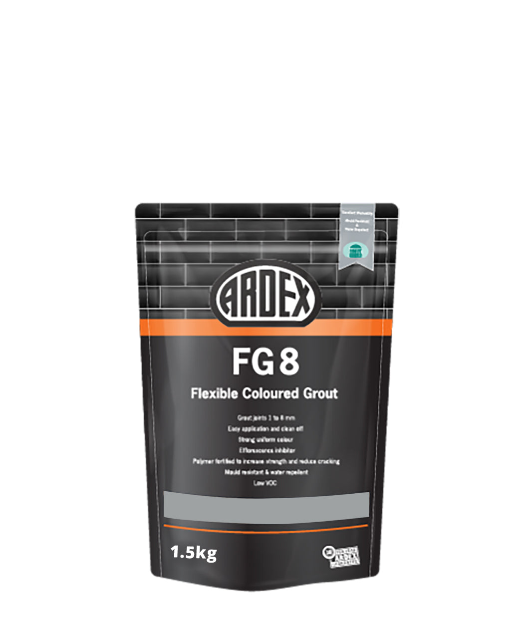 A smooth, flexible cement-based grout with improved colour integrity. ARDEX FG 8 is suitable for tile joints 1-8mm wide and is exceptionally easy to use on walls and floors.