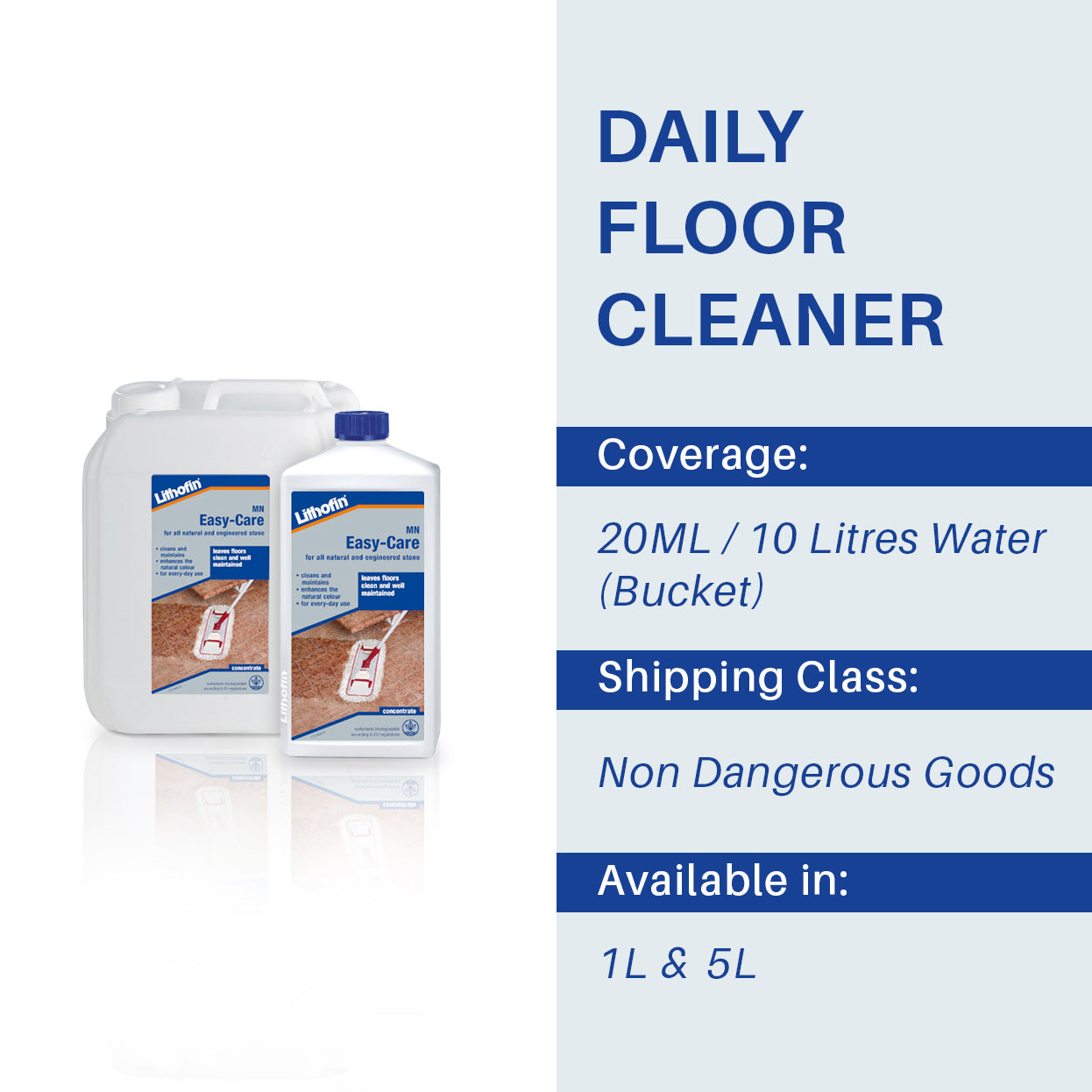 - Coverage: Lithofin Easy-Care is a high-yielding concentrate and very economical. On large areas which are machine cleaned daily approx. 3 litres per 100m² will be needed per month.