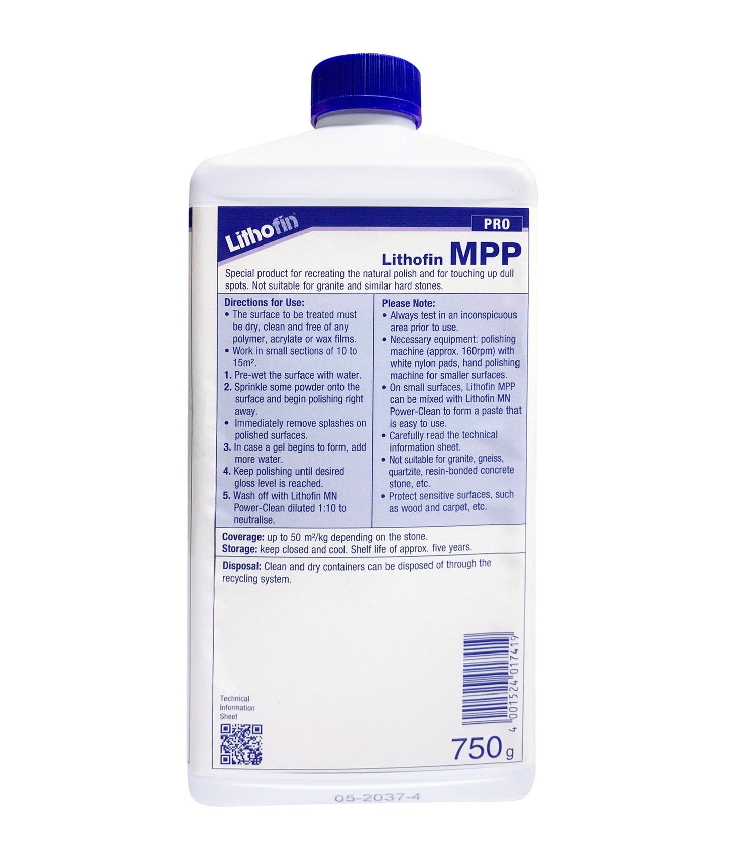 * Kindly refer to the Technical Data Sheet (TDS) for Lithofin MPP - 750gms for complete details. The above consist of important extracted information only and not all.